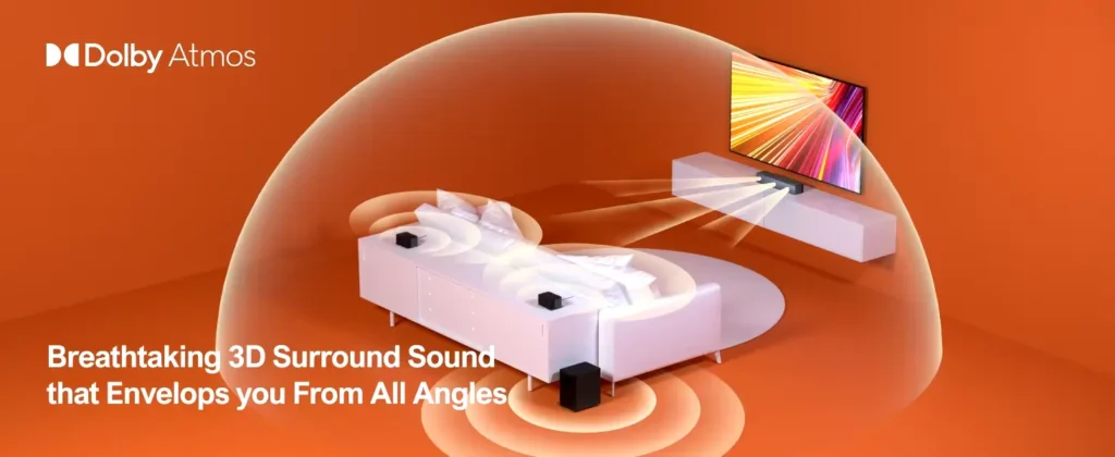 The ULTIMEA soundbar incorporates Dolby Atmos, which elevates your audio experience beyond traditional surround sound. This technology creates a three-dimensional soundscape, allowing sound to move around you in a 3D space. Whether you’re watching an action-packed movie or playing a video game, Dolby Atmos enhances the realism, making you feel like you’re in the middle of the action.